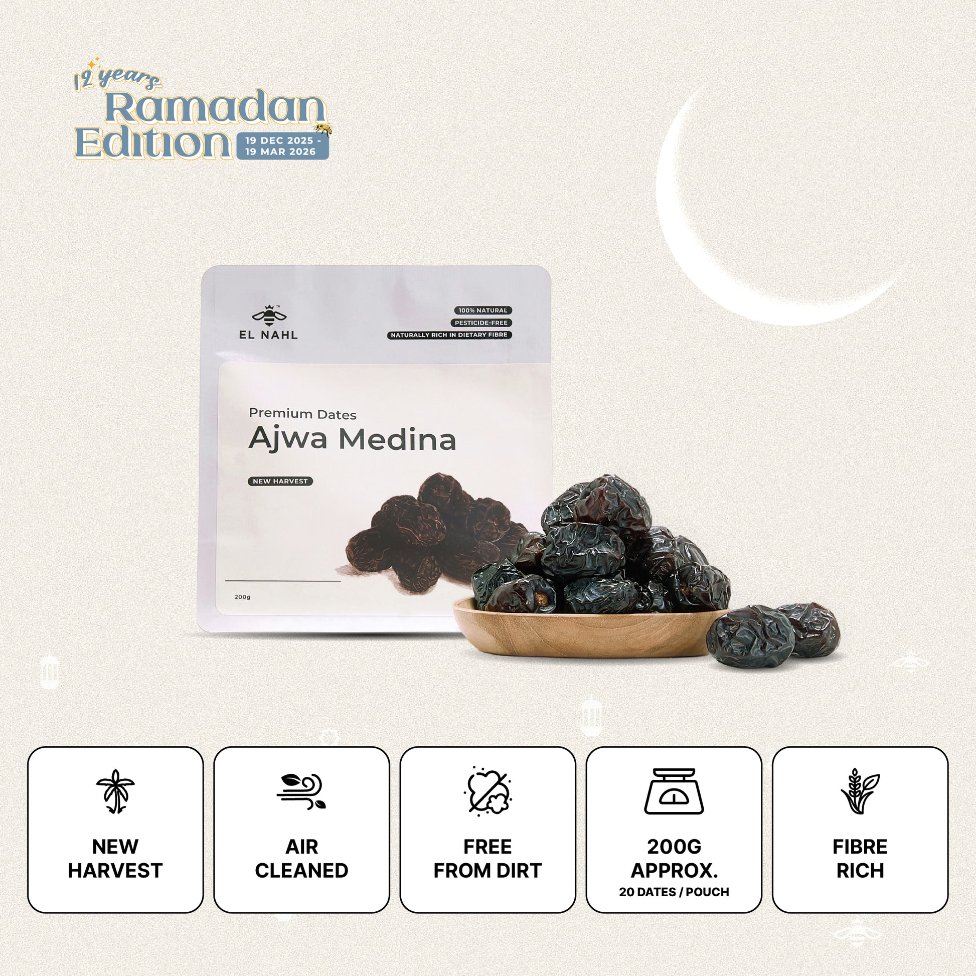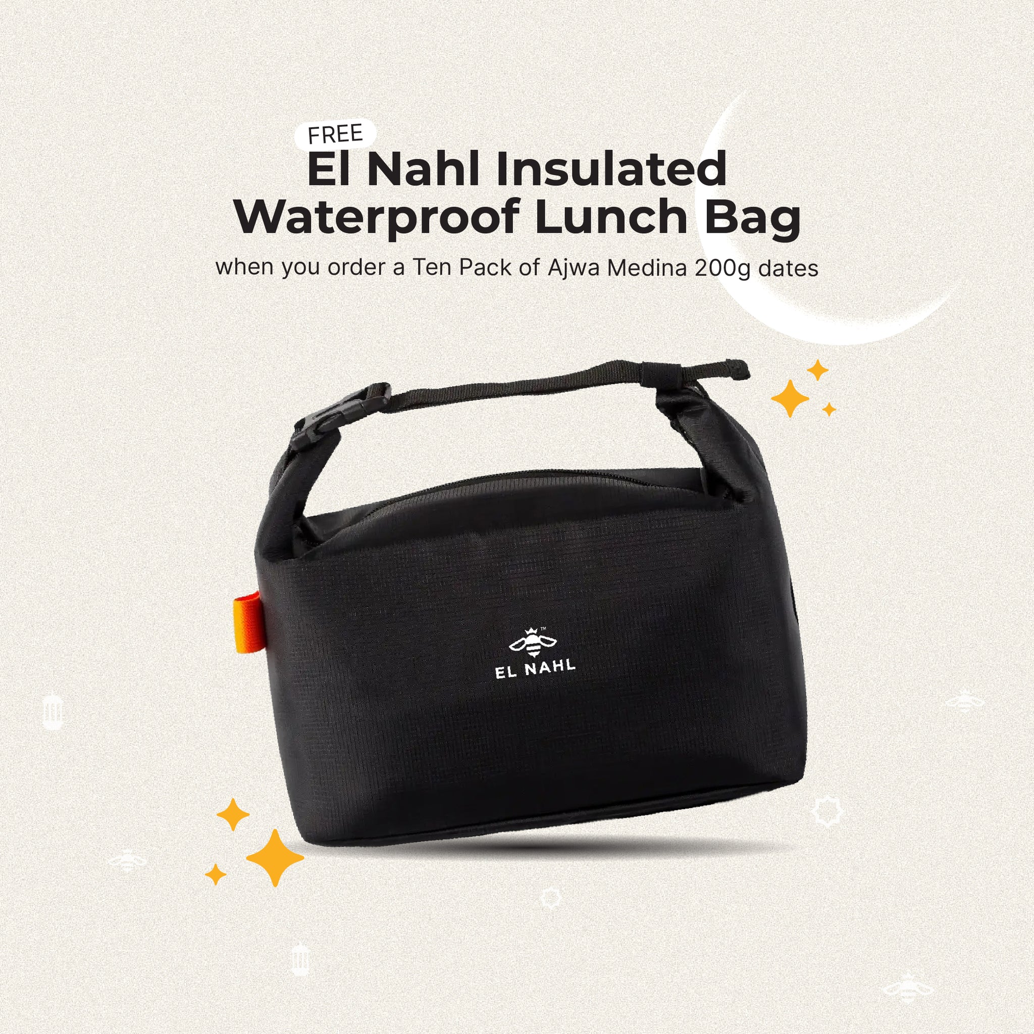 Get a FREE El Nahl Insulated Waterproof Lunch Bag when you order a Ten Pack of Ajwa Medina 200g dates. Offer available to the first 100 customers only!