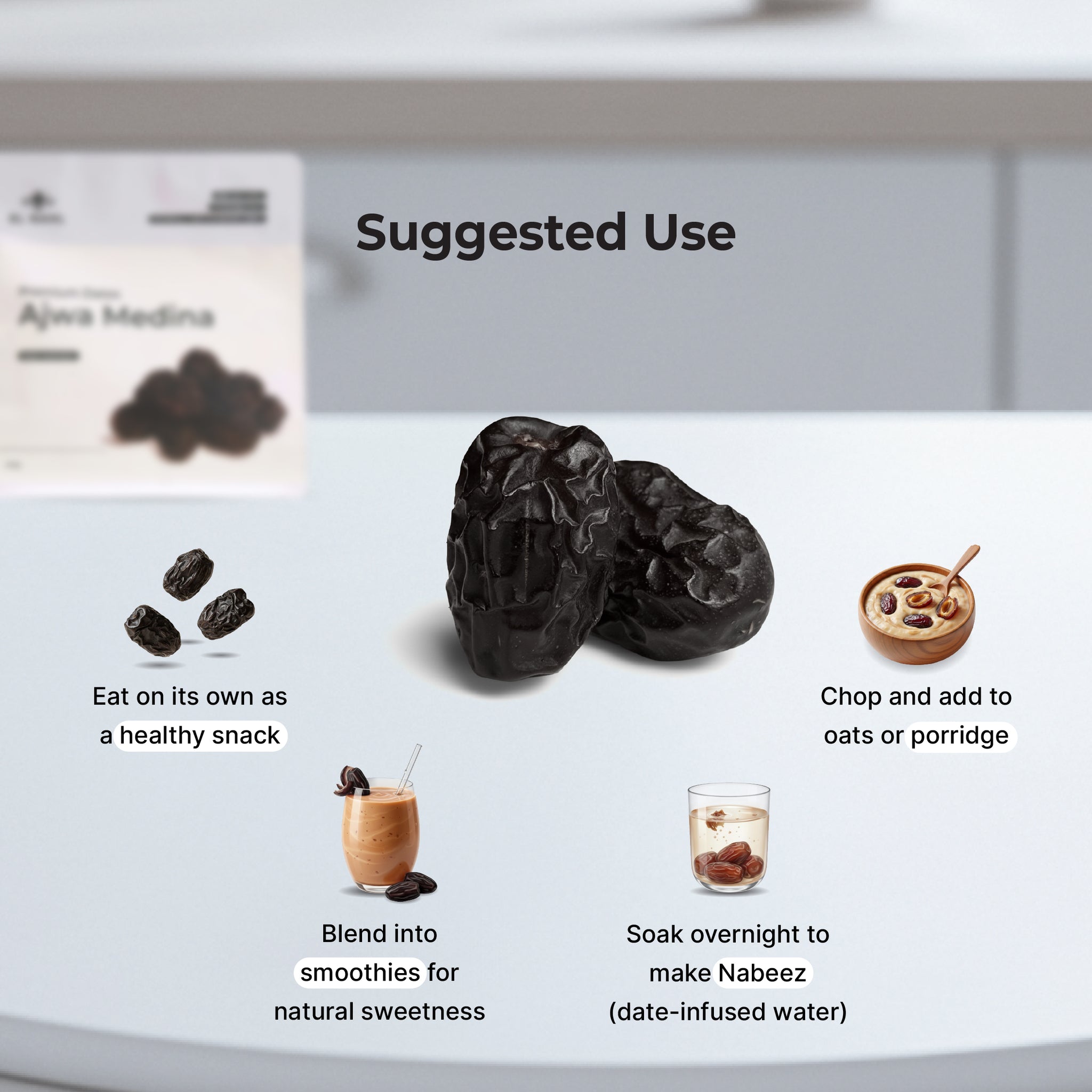 Our Ajwa Medina 200g pouch is the perfect companion for Ramadan preparation or a thoughtful gift for family and friends. Sourced from the fertile lands of Medina, these premium Ajwa dates offer exquisite flavour and unmatched quality. The conveniently sized pouch allows you to stock up for the holy month, ensuring you have a nutritious and energy-packed snack on hand, providing a satisfying boost during Ramadan and beyond.