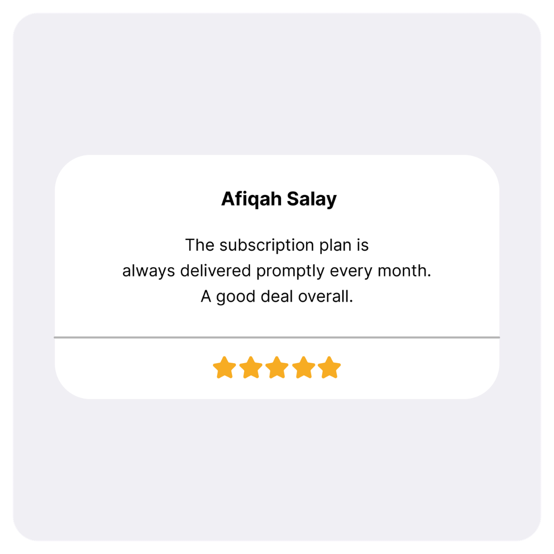 An order will be automatically placed for you every 1 month from your first subscription order. You will receive 3 deliveries in total within 3 months from your first order date.