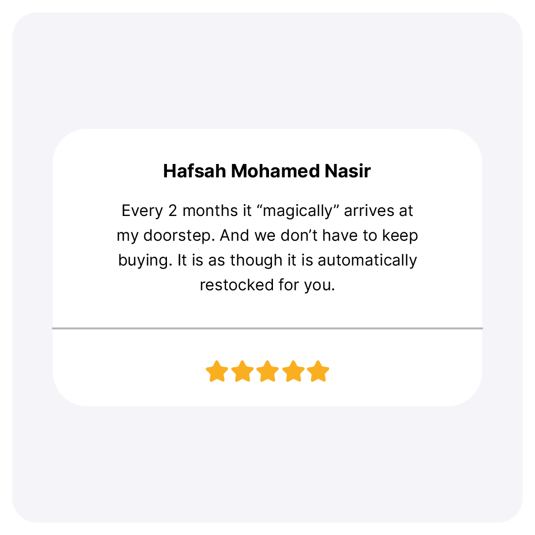 An order will be automatically placed for you every 2 months from your first subscription order. You will receive 3 deliveries in total within 6 months from your first order date.
